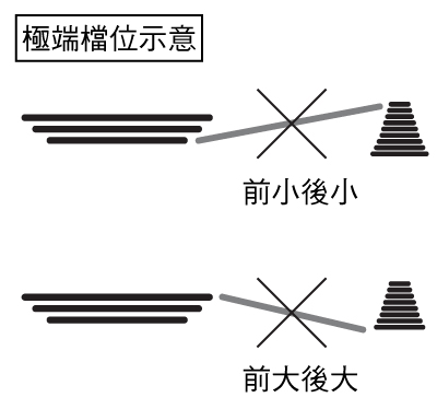 1. 请勿使用极端档位(前大后大、前小后小)骑乘,使链条因偏斜度过大造成链条损伤。