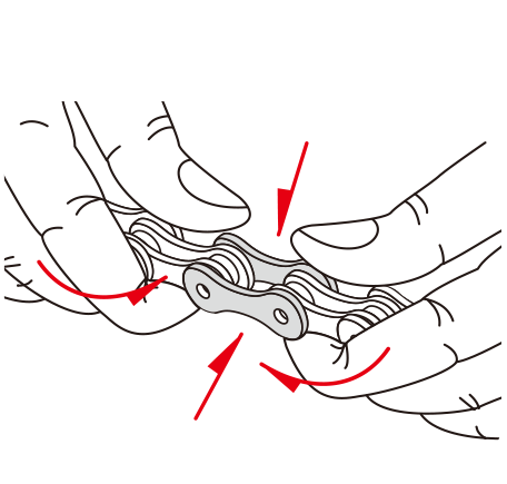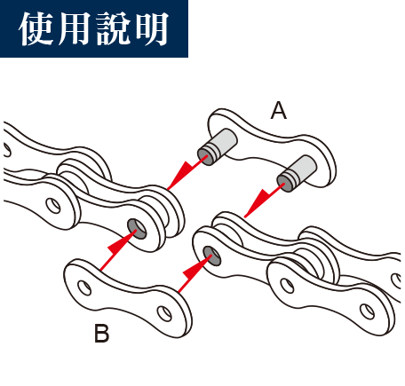 ● 將鎖片(圖1-B)與軸片(圖1-A)對住抓緊並輕輕的將鏈條? 往鎖片方向彎曲至小軸卡入合住。